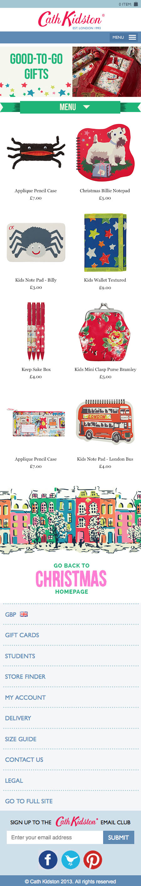Last year's responsive christmas shop for Kath Kidston. Designed whilst working for BT Expedite. We used a flexible platform called Fresca Create Suite which allows great flexibility for the client and great usability for the customer.