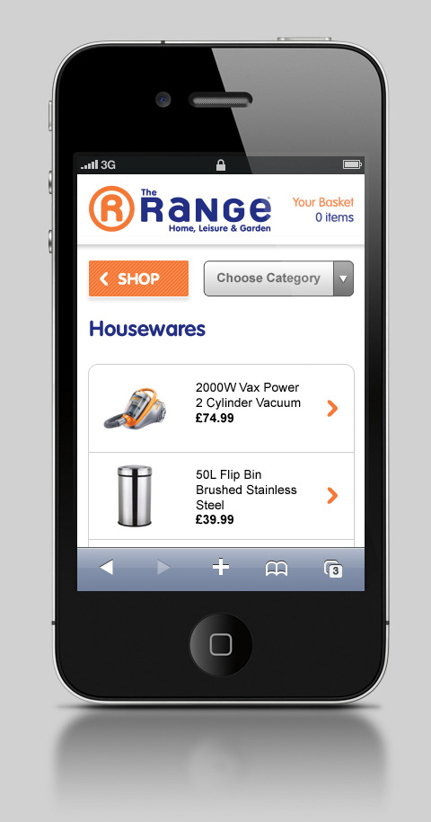 Selected design views from The Range's Mobile site. Designed by me whilst working for BT Expedite (Formerly BT Fresca)